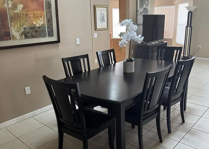 Die Villa in Orlando liegt im Stadtteil Celebration, 10 Minuten mit dem Auto vom Emerald Island Boulevard entfernt. Diese Villa liegt in 4 Kilometer Entfernung von Naturattraktionen wie dem Disney's Animal Kingdom Freizeitpark.